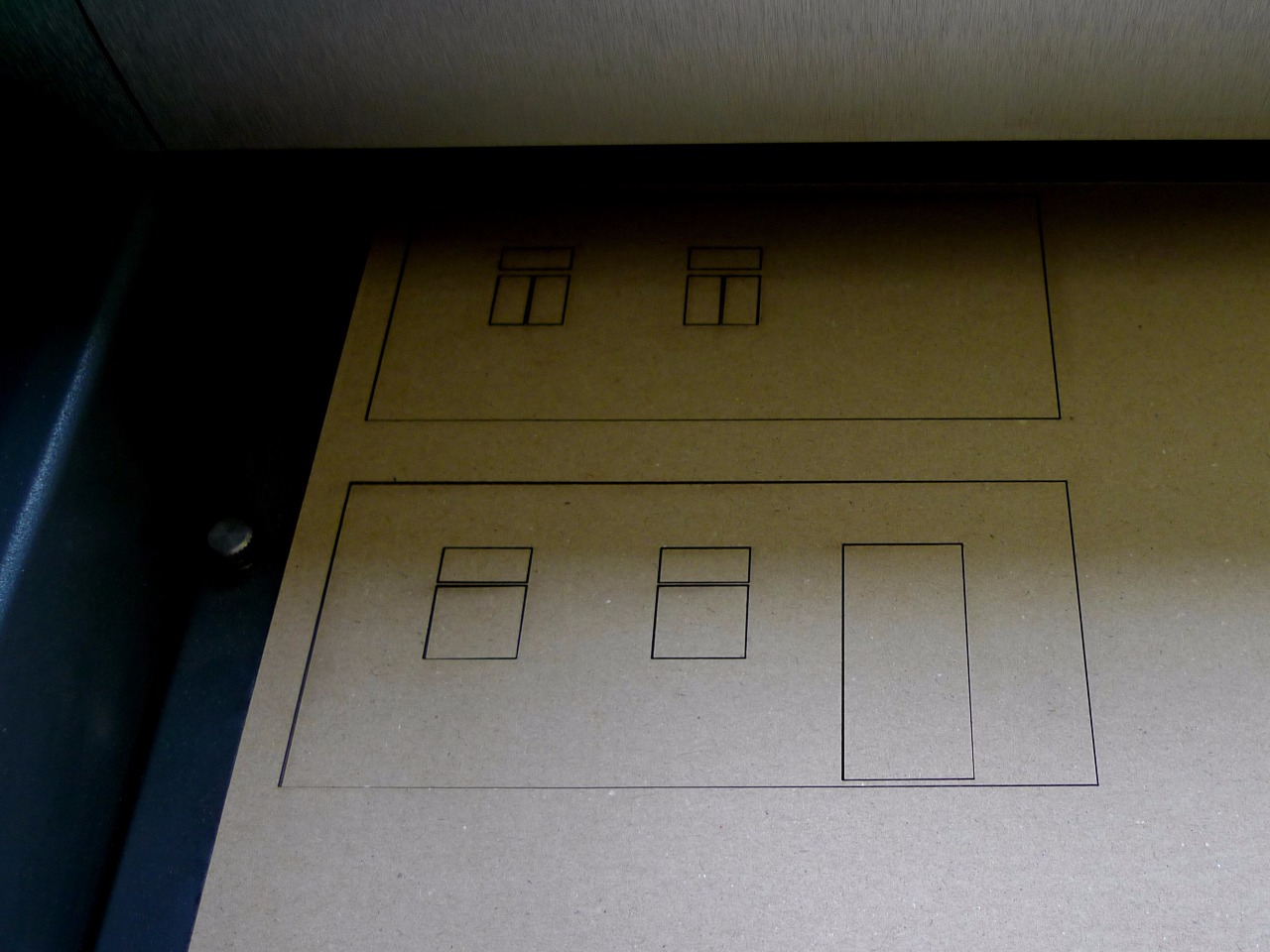 Využití laseru pro značení a dělení deskových materiálů má omezený sortiment použitelných materiálů - karton, lepenka, plexisklo. Výhodou je zpracování finančně dostupných materiálů a rychlost řezání, nevýhodou je například u kartonu opálená hrana. Princip zařízení je popsán podle práce na laserovém plotru ULS o výkonu 50W a pracovní ploše 60 x 30 cm. Datovým vstupem je vektorový .pdf soubor, který může být vytvořen v libovolném grafickém programu, a kde červené čáry představují vryp a modré řeznou hranu.